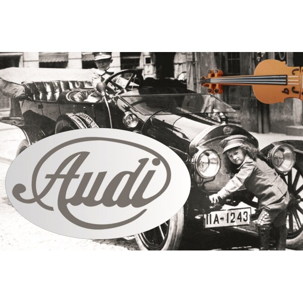 Первоначально логотип фирмы "Ауди" состоял из перевернутого треугольника с надписью Audi, над которым стояла цифра "1", этот логотип был создан Августом Хорьхом, после его ухода из фирмы "Хорьх" и основанием в том же году фирмы "Ауди". Однако логотип был очень масивным, и не удобным, и очень быстро логотип на автомобилях упростили до четырех букв "AUDI". Данный логотип сохранялся на автомобилях производства фирмы "Ауди" до 1932 года, когда произошло слияние четырех фирм в одну компанию.